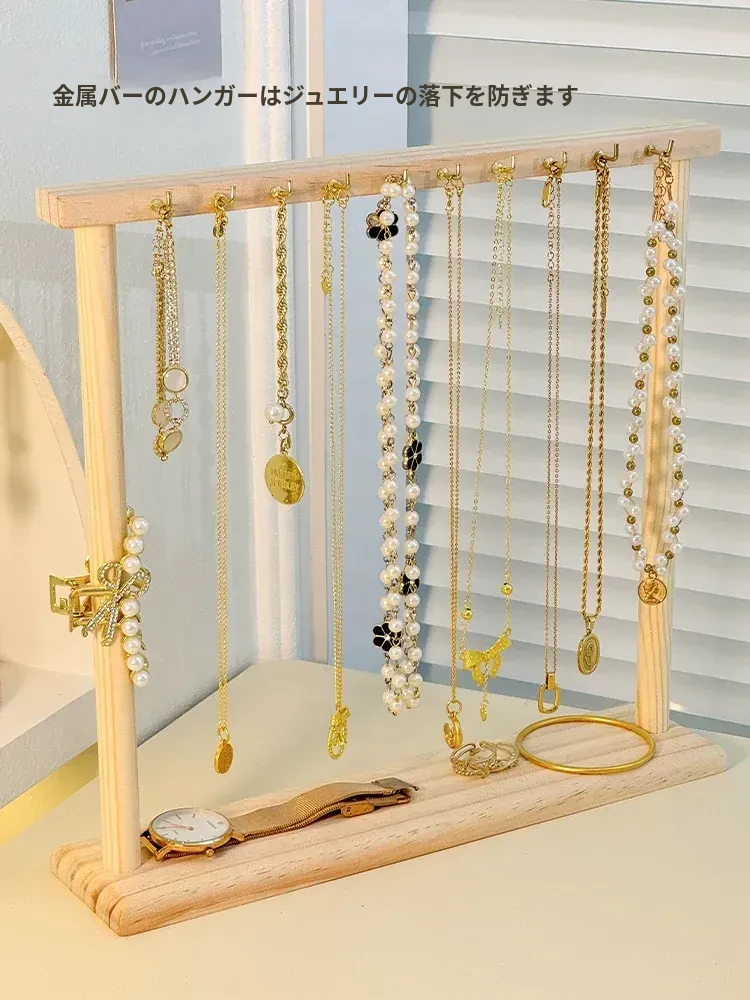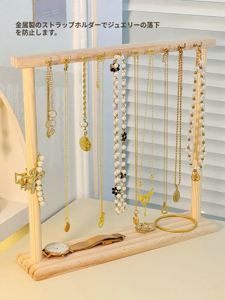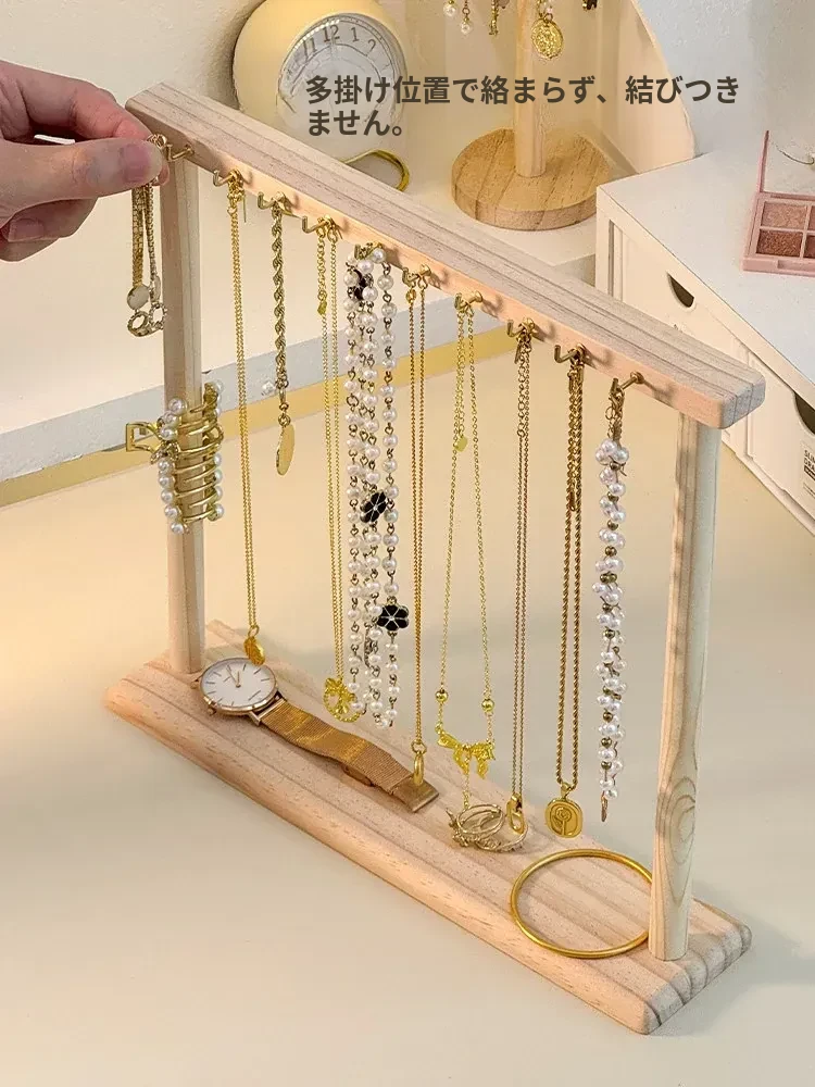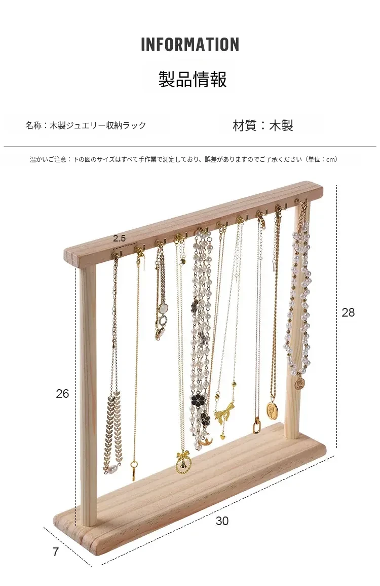 【大号10フック-26cm】木製ジュエリースタンドPM-0049