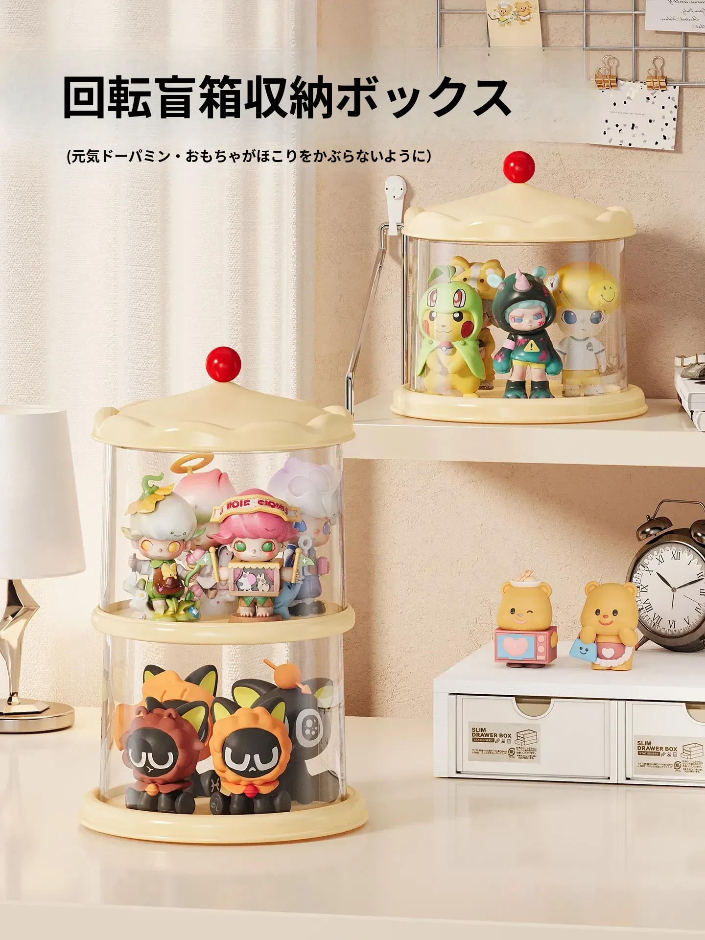 回転式フィギュアディスプレイケース アクリル製 ブラインドボックス収納ラック 家庭用 ポップマート レゴブロック おしゃれな小物入れ!あなたのコレクションを美しく飾る!