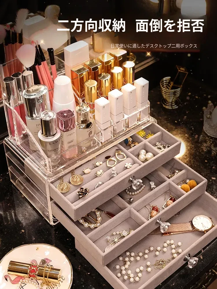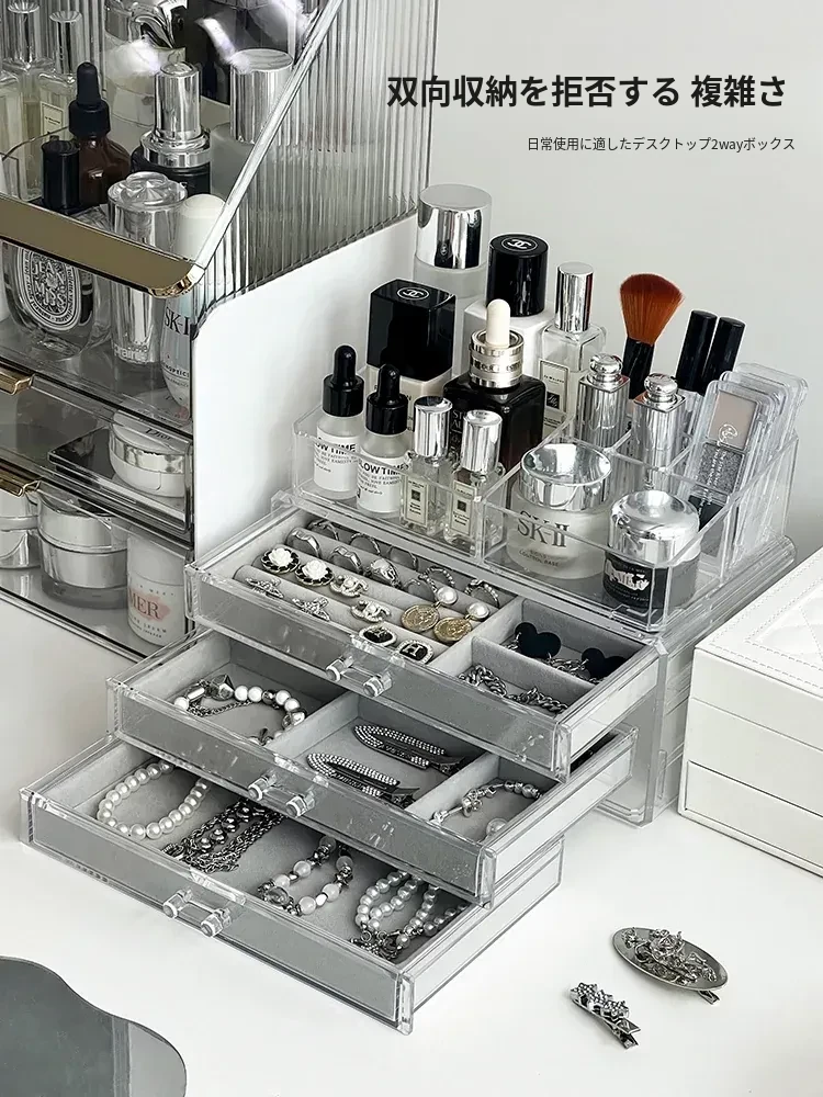 ジュエリー&コスメ収納ボックス - 引き出し式のアクセサリー、イヤリング、リップ、スキンケアをスマートに整理!アクリル製のイヤリングスタンドで、美しさを引き立てるおしゃれな収納を実現!