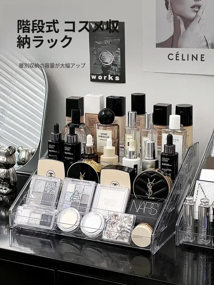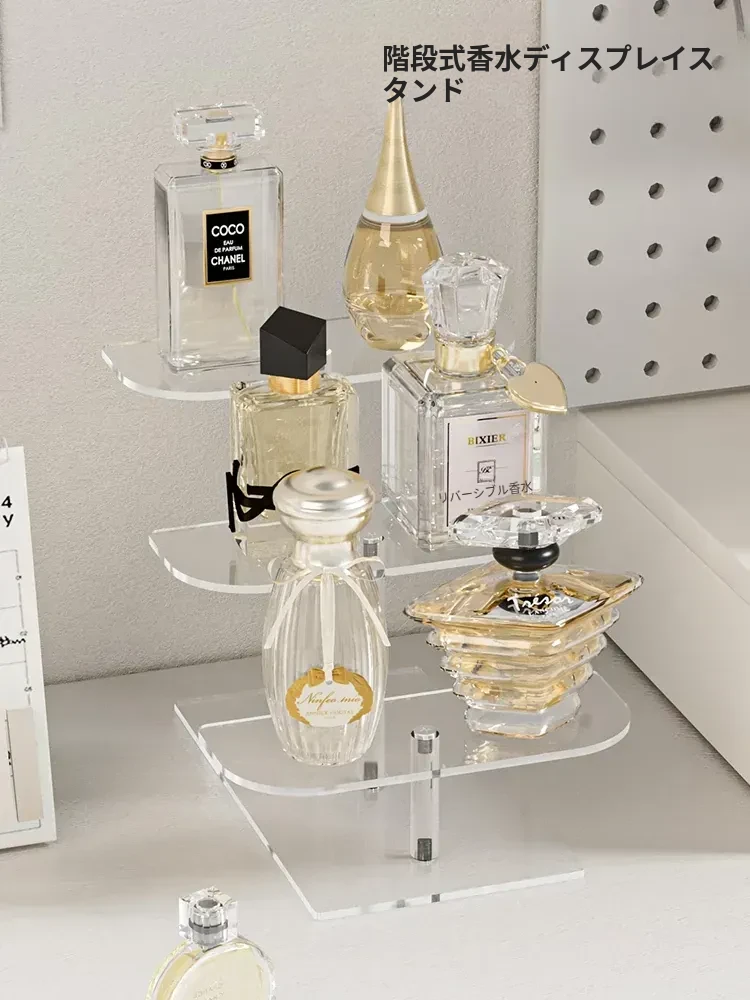 高級感あふれるアクリル製の階段式香水ディスプレイラック - 透明で多層の化粧品収納ボックス、スキンケアアイテムをスタイリッシュに整理!