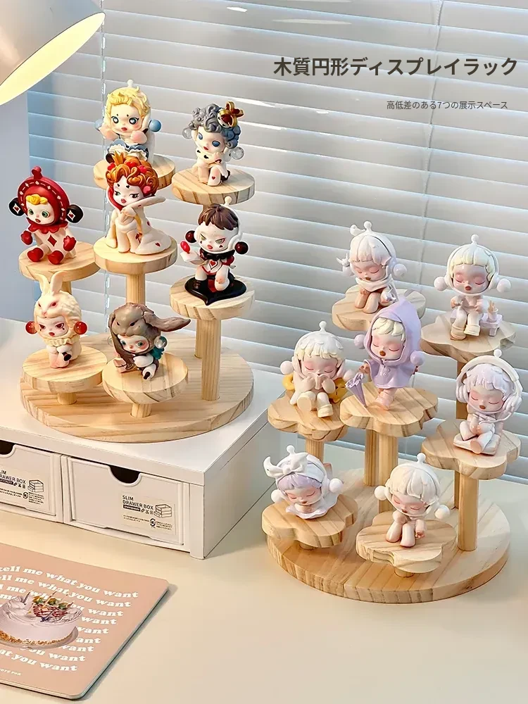ポップマートのブラインドボックス用大容量木製フィギュアディスプレイスタンド - おしゃれな円形台座で、コレクションを美しく飾る!あなたのフィギュアを引き立てる完璧な収納ソリューション。