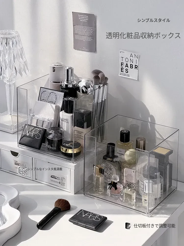 高級感溢れる透明アクリル製化粧品収納ボックス!デスク上をスッキリ整理、メイクブラシや口紅、スキンケアアイテムを美しくディスプレイ。おしゃれで機能的な収納で、毎日のメイクタイムをもっと楽しく!