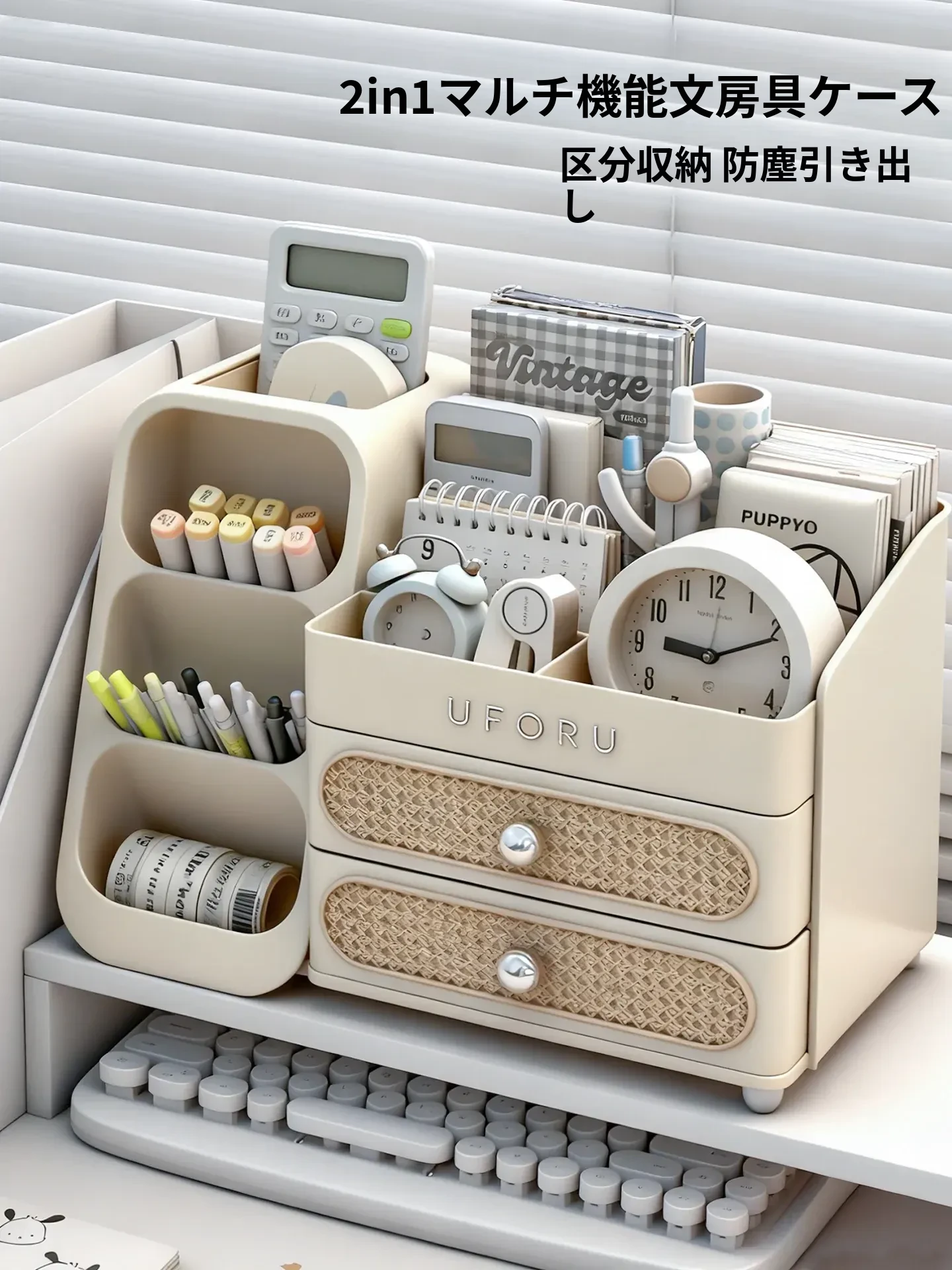デスク用多機能収納ボックス 大容量 学生向け 書斎用 スリムペンスタンド 引き出し付き メモ帳整理に最適な必需品