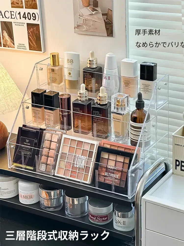 デスクトップ化粧品収納ラック 階段式アクリルアイシャドウパレット&香水ディスプレイスタンド メイク台用リップ収納ボックスで、美しいメイク環境を手に入れましょう!