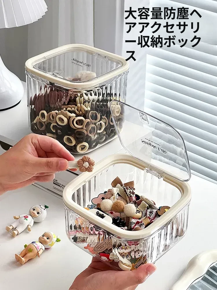 防塵透明アクリル収納ボックス - 蓋付きで大容量!多機能ハンドル付き整理ボックス、スマホケースや小物の整理に最適です。あなたの生活空間をスッキリ整えましょう!