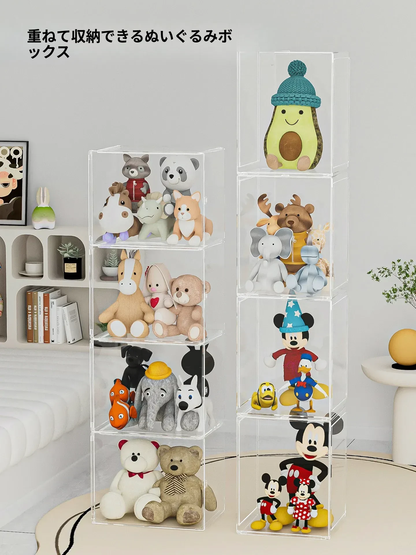 ディズニーキャラクター「レナベール」ぬいぐるみ収納ボックス - 大容量アクリルディスプレイケースで、お気に入りのぬいぐるみを美しく飾ろう!可愛いインテリアとしても最適!