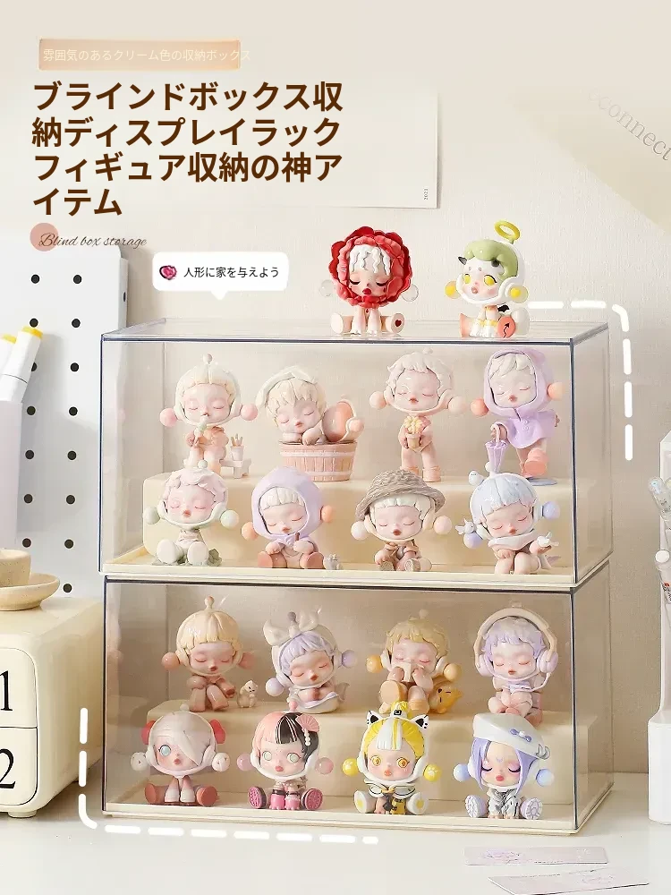 アクリル製大容量ブラインドボックス収納ディスプレイスタンド - 脚付き防塵ケース、ポップマートフィギュアやモデルを美しく展示!あなたのコレクションをスタイリッシュに守ります!