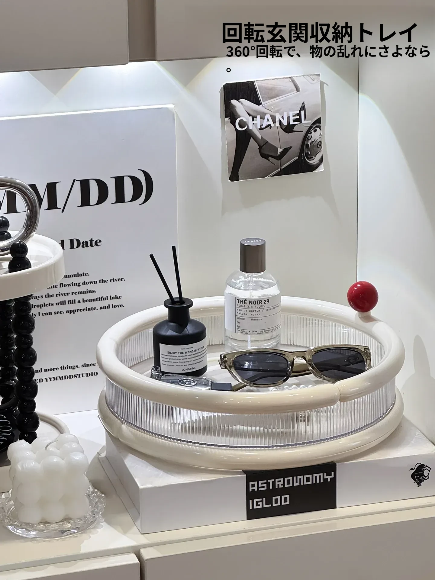 高級感漂う玄関収納ボックス!眼鏡や鍵をスマートに収納できる入門ドア用シューズキャビネットの装飾品。デスク上で回転するトレイで、スタイリッシュな空間を演出します。
