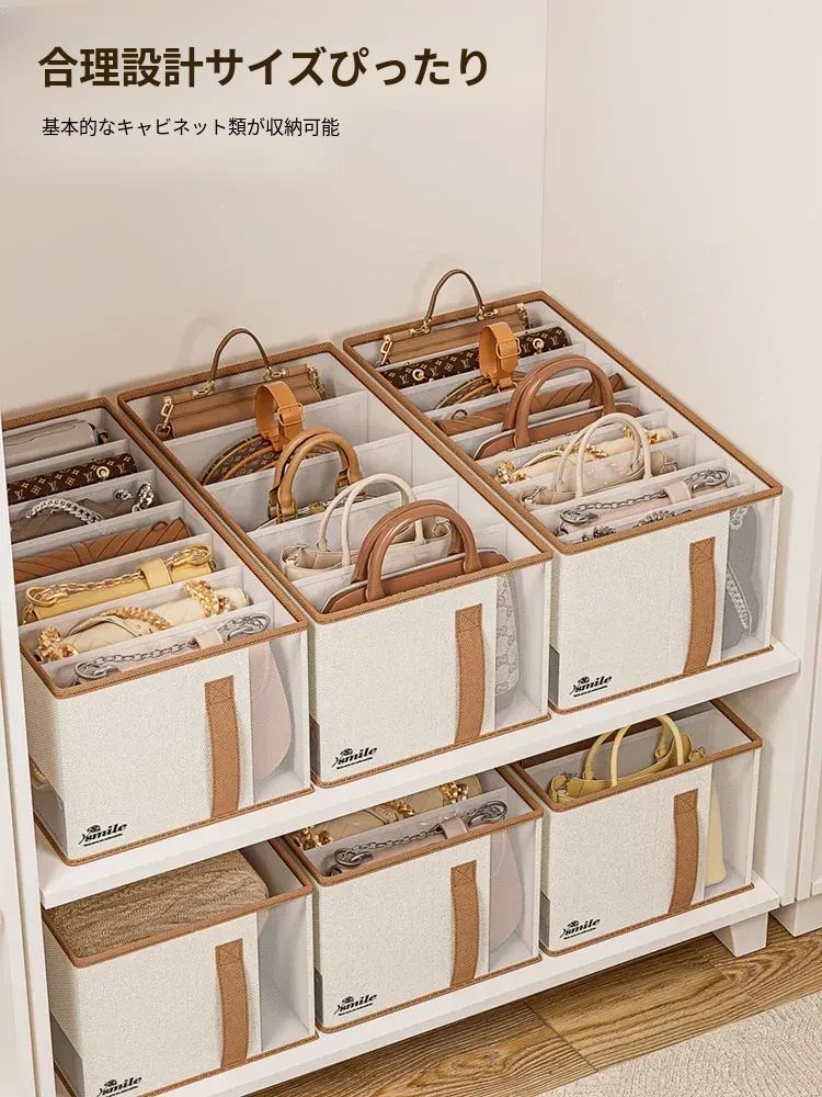 バッグ収納マジック!家庭用クローゼットに最適な布製仕切り、バッグをすっきり整理できる防塵・省スペースの収納ラック。どんなサイズのバッグにも対応し、あなたのクローゼットを美しく整えます!