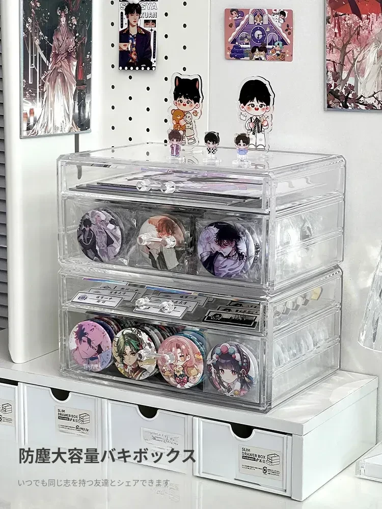 バジ収納ボックス アクリルカラーペーパーグッズディスプレイスタンド デスクトップ透明バッジメダル引き出し式整理整頓!おしゃれで便利な収納アイテム、あなたのデスクをスッキリと美しく演出します!