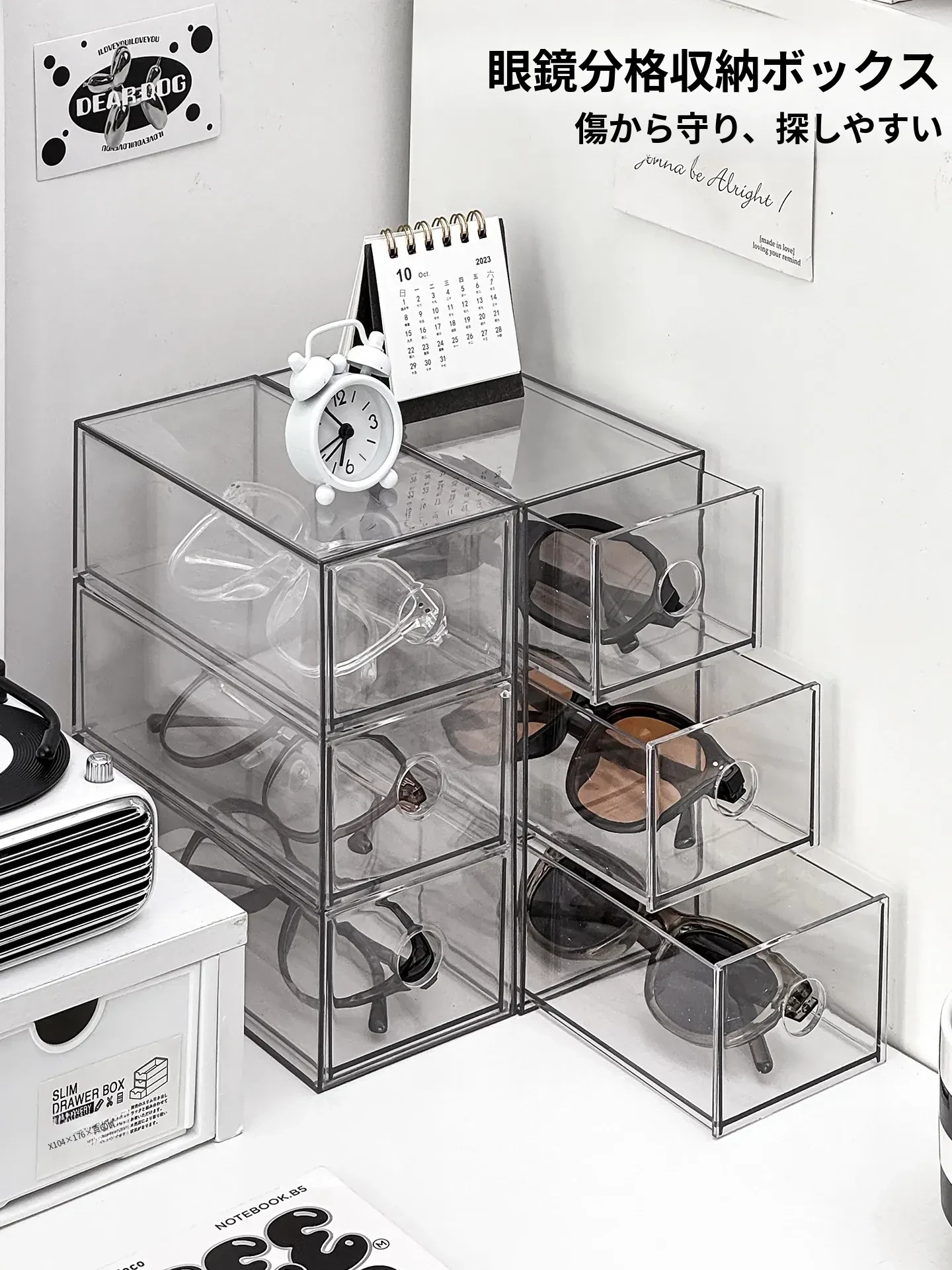 デスクトップ用多層抽斗サングラス収納ボックス - 透明アクリル製、メガネやコンタクトレンズもすっきり整理!おしゃれなディスプレイラックで、いつでもお気に入りのアイテムを見せることができます。