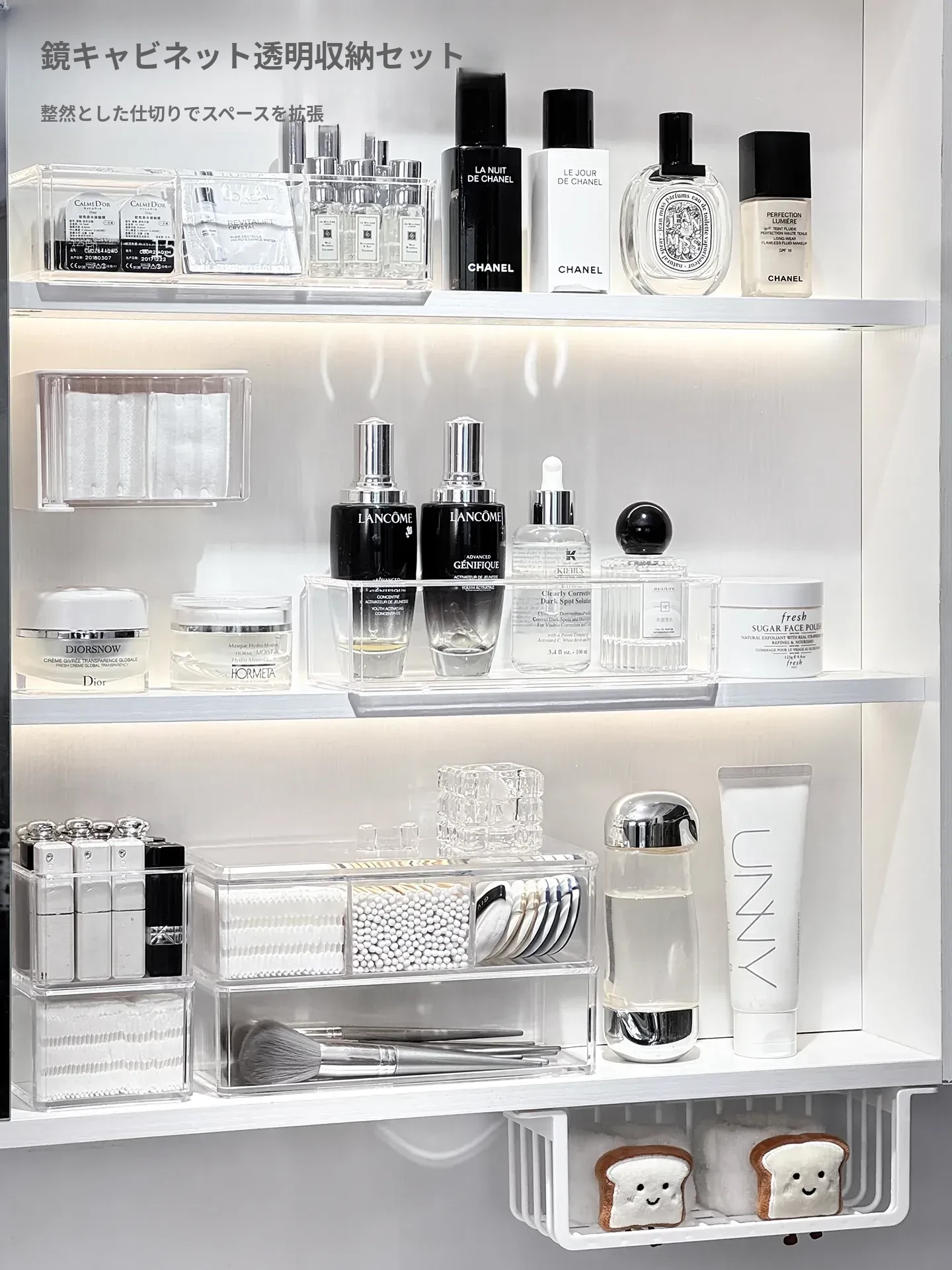 透明ミラーキャビネット収納ボックス - バスルームで化粧品や口紅をスッキリ整理!おしゃれで機能的な分格収納ラック、洗面台を美しく保つ必須アイテム!