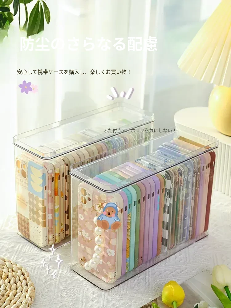 防塵透明アクリル収納ボックス - 蓋付きで大容量!多機能ハンドル付き整理ボックス、スマホケースや小物の整理に最適です。あなたの生活空間をスッキリ整えましょう!