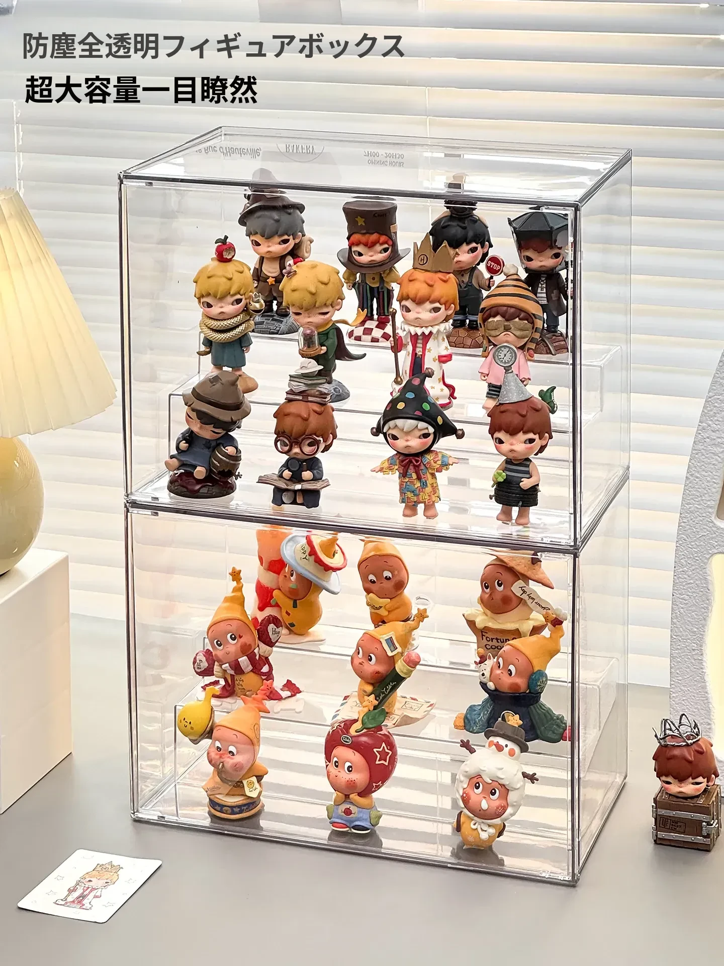 DIMMOドール収納ボックス 透明アクリルブラインドボックス 収納&ディスプレイラック ゴム製フィギュア&ぬいぐるみ用 防塵ドールキャビネットで、大切なコレクションを美しく保管しよう!