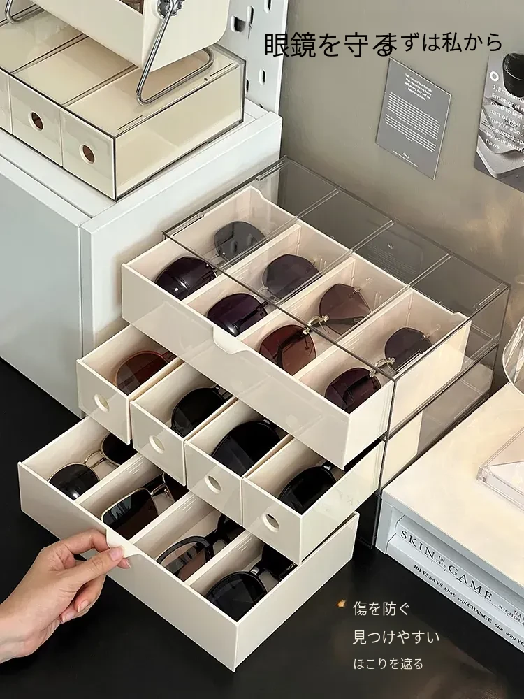 デスクトップ用多層抽斗サングラス収納ボックス - 透明アクリル製、メガネやコンタクトレンズもすっきり整理!おしゃれなディスプレイラックで、いつでもお気に入りのアイテムを見せることができます。