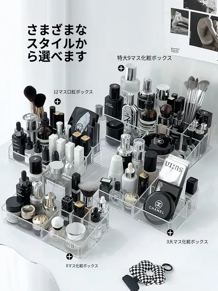 アクリル製化粧品収納ボックス - スキンケアやリップを美しく整理!寮のデスクにぴったりのスタイリッシュな収納ラックで、あなたのメイクアップをもっと楽しく!