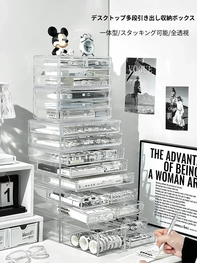 学生向け!大容量デスク用文具収納ボックス - 手帳や付箋もスッキリ整理!積み重ね可能な多機能引き出し収納ラックで、デスク周りをすっきりと美しく保ちましょう。