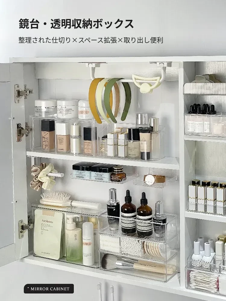 透明ミラーキャビネット収納ボックス - バスルームで化粧品や口紅をスッキリ整理!おしゃれで機能的な分格収納ラック、洗面台を美しく保つ必須アイテム!