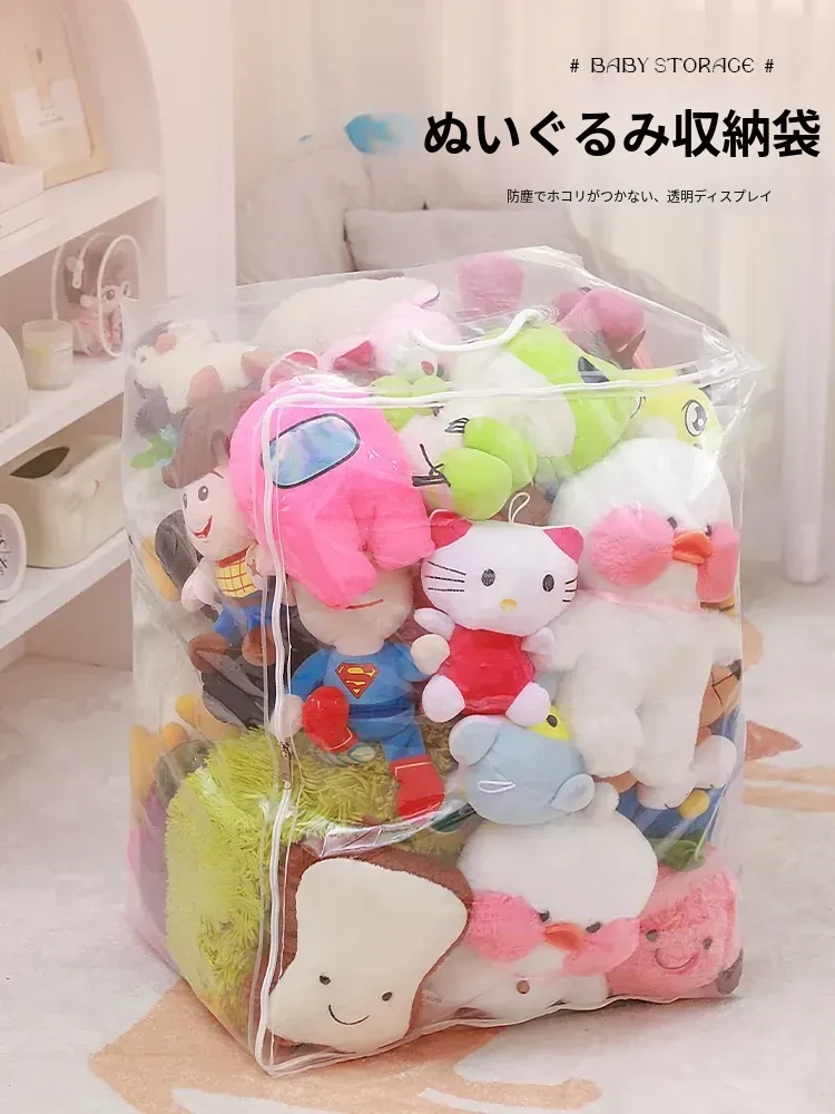 ぬいぐるみ収納の必需品!透明ファスナー付きおもちゃ収納バッグ - 子供のぬいぐるみや人形をすっきり整理できる便利なバスケット!お部屋をかわいく整頓して、遊びの時間をもっと楽しく!
