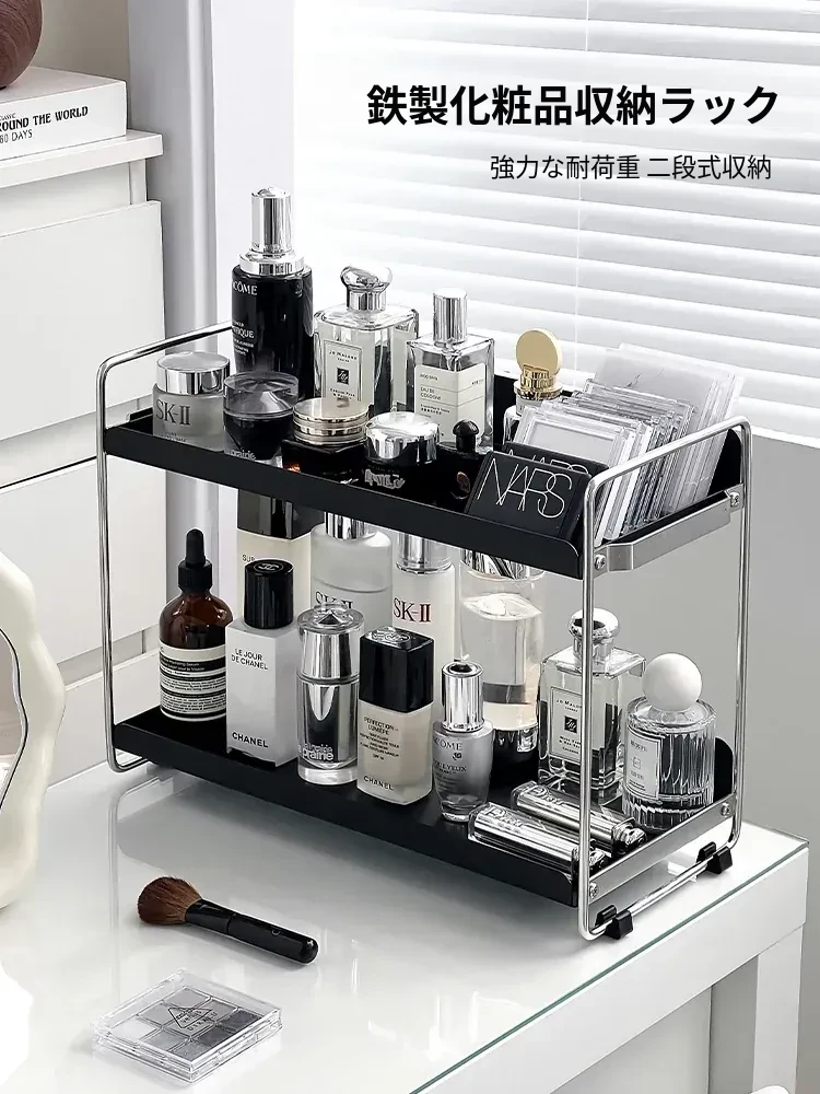 高級感あふれるアイアン製化粧品収納ラック - スタイリッシュなデスクトップスキンケア用品スタンド、玄関用リップスタンド&ジュエリーホルダーでおしゃれに整理整頓!